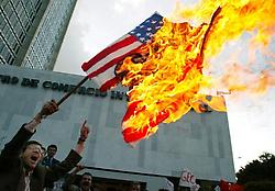 Después de concluir el acto cultural, los manifestantes se dirigieron a donde están los soldados norteamericanos y dominicanos lanzando consignas y quemaron una esfige del Tío Sam.
