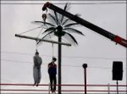 El cartel instalada a mediados de enero por la Sección de Intereses para proyectar mensajes contra el gobierno comunista del presidente Fidel Castro y a favor de la democracia ha enfurecido a Cuba, que construyó frente al edificio un muro de banderas de más de 20 metros de altura para taparlo.