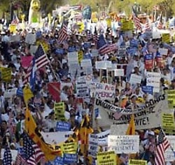 Más de 100.000 personas tomaron las calles de Nueva York en la última manifestación contra la política migratoria. En la de Los Ángeles participaron medio millón de personas. (FIN/2006)